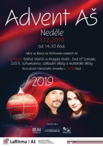 AŠ – vánoční koncert s Magdou Malou « Všechny Akce akce již proběhla. AŠ – vánoční koncert s Magdou Malou 1. 12. 2019 | 18:00 - 19:00 « Branžež u Ml. Boleslavi Bystřice nad Pernštejnem – koncert (s Magdou Malou) » + Kalendář Google+ Exportovat iCal Podrobnosti Datum: 1. 12. 2019 Čas: 18:00 - 19:00 Rubrika Akce: Vystoupení